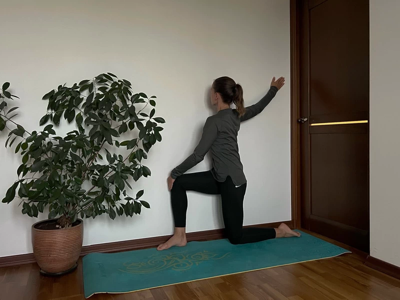 Wyciągnij jedną rękę w bok i przyciągnij ją do klatki piersiowej drugą ręką.